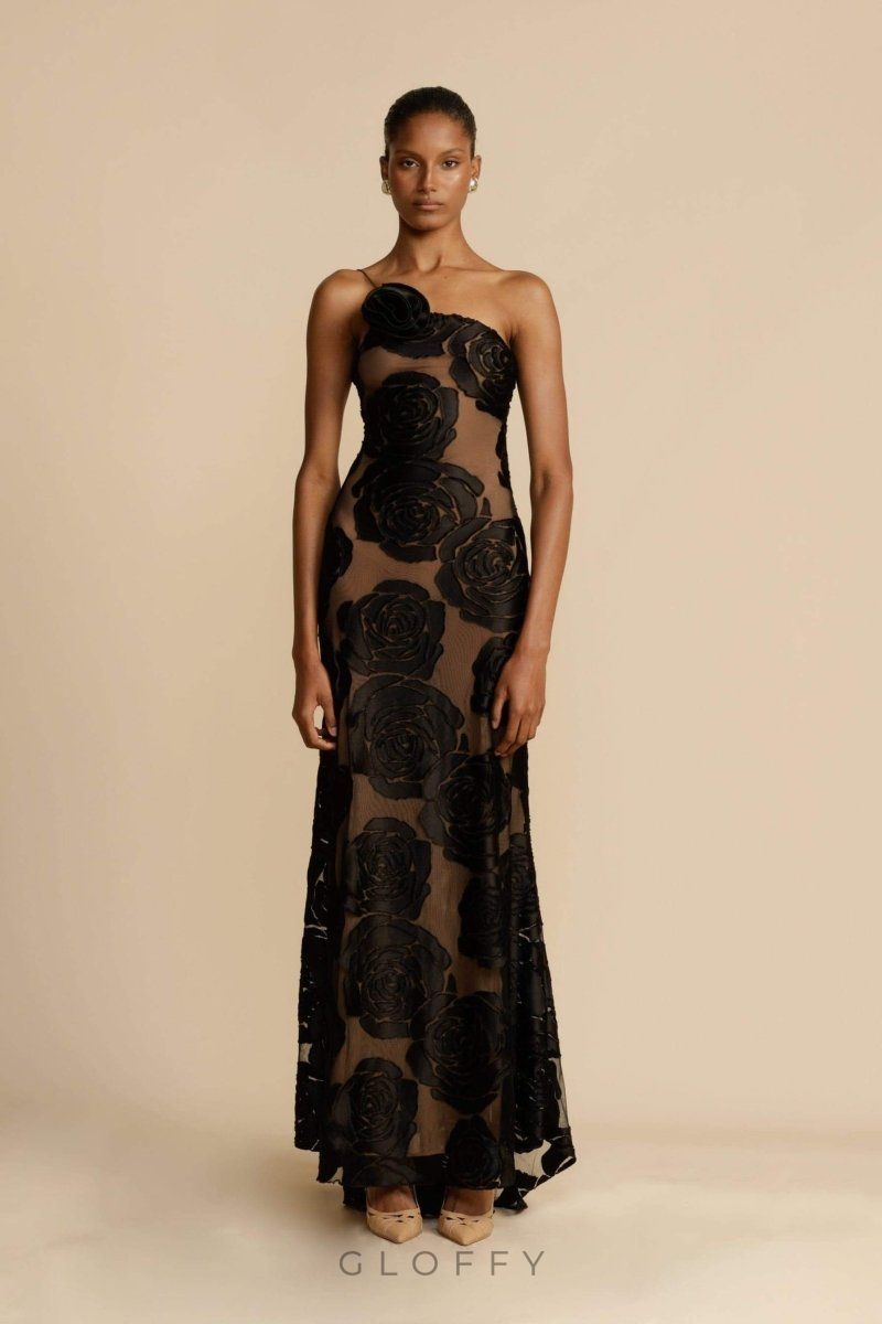 Çiçek Desenli Asimetrik Yaka Maxi Elbise ile tarzınızı yükseltin. Bu çarpıcı parçada zarif bir omuz askısı ve zarif bir dokunuş için elle dikilmiş ipeksi bir gül bulunuyor. Lüks ağ ve kadifeden üretilen bu ürün, orta derecede esnek ve tamamen astarlı iç kısmıyla göz kamaştıran bir uyum sunar. Her türlü özel gün için mükemmel olan bu elbise, çiçek çekiciliğini sofistike tasarımla birleştiriyor.
