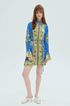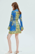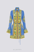 - Tasarım: Yakalı, kravat detaylı, konum baskılı, uzun kollu elbise