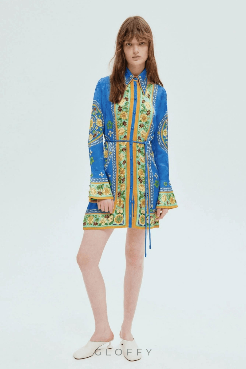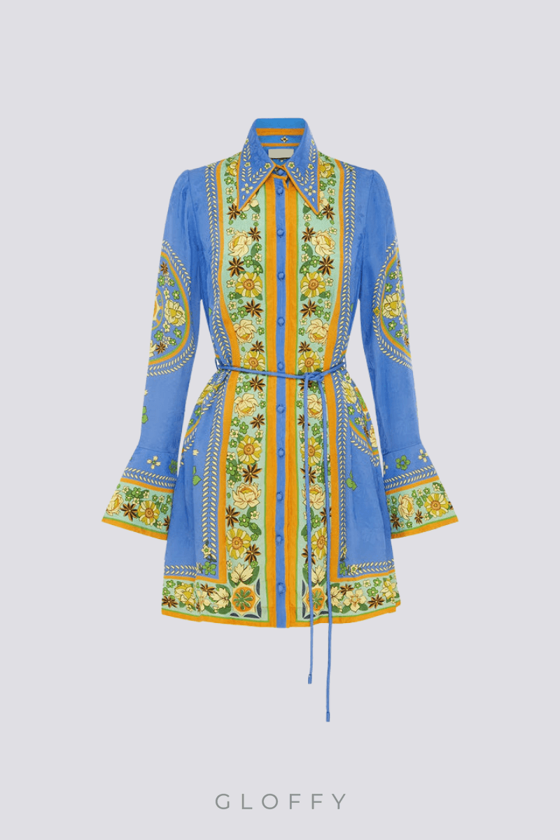 Tatile hazır bu uzun kollu elbise, şık bir yakaya ve belden bağlamaya sahiptir ve figürünüzü güzel bir şekilde vurgular. Göz alıcı konumlandırılmış baskı, canlı bir dokunuş katarak onu güneşli kaçamaklar veya gündelik geziler için mükemmel kılar.