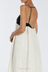 Bol Askılı Siyah Beyaz Patchwork Maxi Elbise