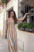 Sıcak havalarda yapılacak geziler için mükemmel olan bu elbise, yazın özünü yakalayan canlı baskılarla süslenmiştir. İster bir plaj partisine ister bir bahçe toplantısına gidiyor olun, bu elbise konfor ve zarafeti bir araya getirerek onu sezonluk gardırobunuzun olmazsa olmazı haline getiriyor!