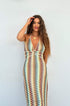 Yaz koleksiyonumuzla tanışın: Zarif tığ işi çiçek desenlerine sahip, V yakalı, güzel bir maksi elbise. Bu şık parça, figürünüzü güzelleştiren yüksek bel tasarımını sergilerken, narin askılar kadınsı bir dokunuş katıyor.