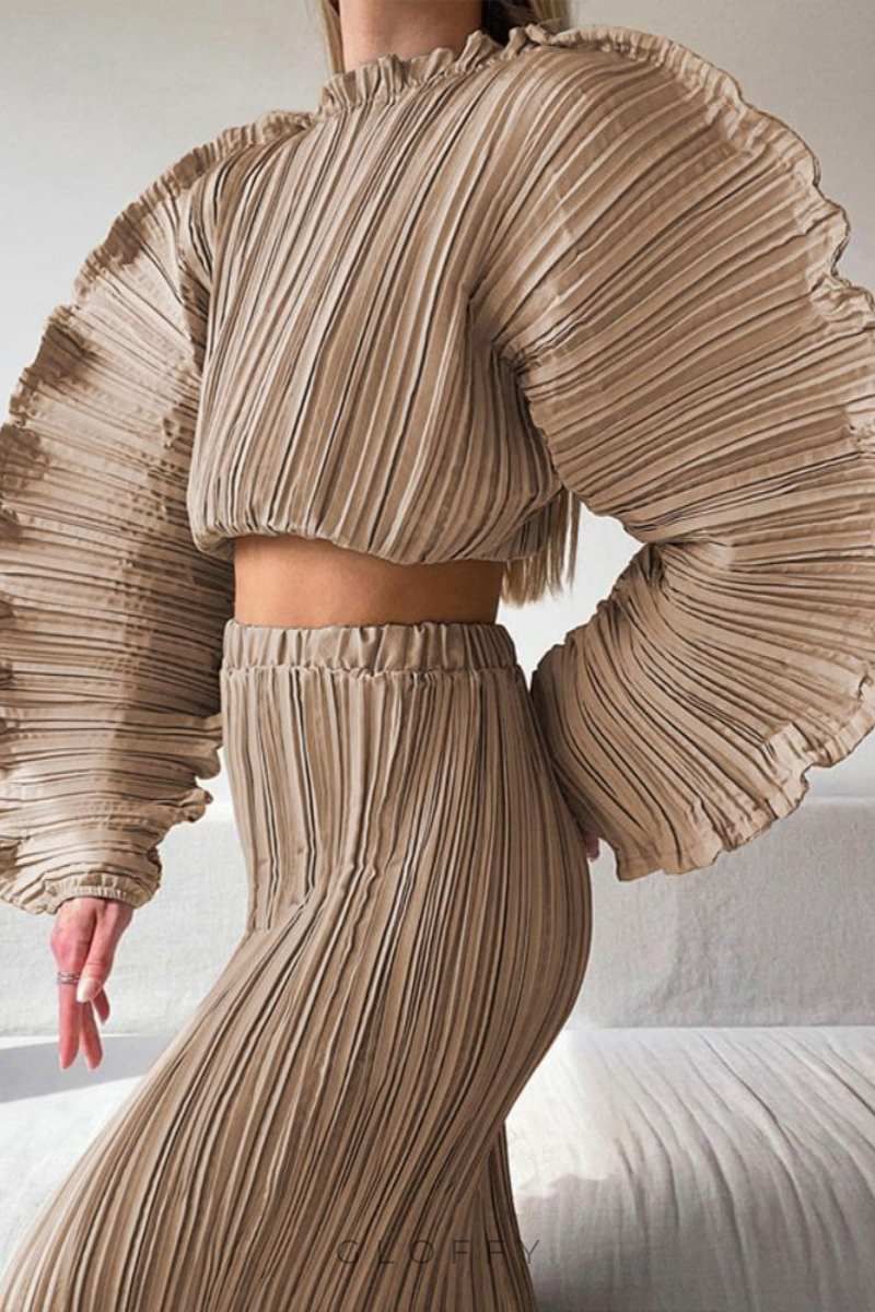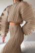 Mabel Plisse Batwing Sleeve Kısa Üst, dokulu plise kumaşı dramatik batwing kollarla ve modaya uygun kısaltılmış silüetle birleştiriyor. Hafifçe esnek malzeme rahat ve rahat bir uyum sağlarken kazak tasarımı kolay giyilmeye olanak tanır. Üst üste giymek veya tek başına giymek için ideal olan bu üst, modaya uygun ve zahmetsizce şık bir görünüm için yüksek belli pantolon veya eteklerle güzel bir şekilde eşleşir.