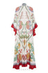 Zarafet ve sanatsal incelik yayan bir parça olan Magnifico Baskılı Maxi Elbise ile gardırobunuzu yükseltin. Karmaşık baskı, cesur ama zarif bir görünüm sunan ustaca tasarımın bir kanıtıdır. Hafif saten fitilli kumaştan üretilen bu elbise, lüks ve konforu eşit ölçüde sunar.