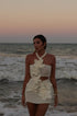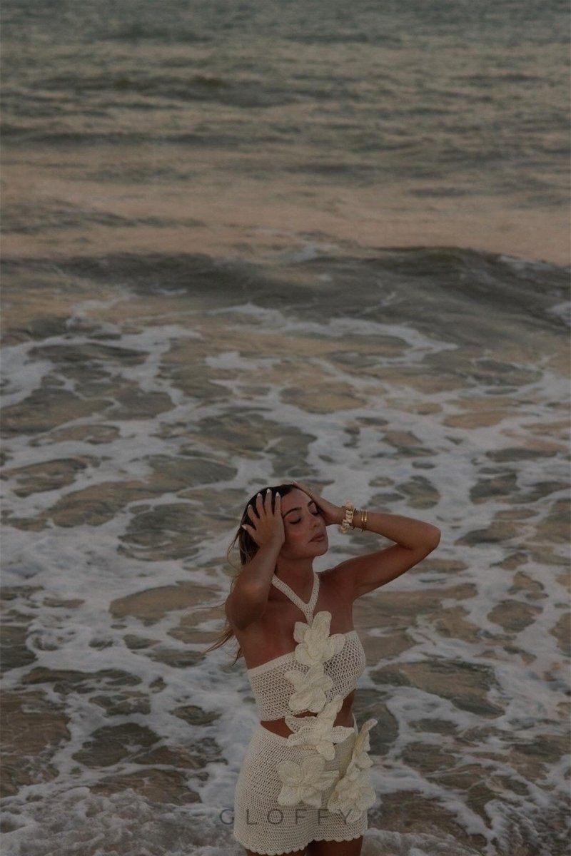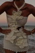 Benzersiz tarzınızı sergilemek için tasarlanmış Boyundan Bağlamalı Kesik Mini Elbise ile öne çıkın. Bu kolsuz mini elbise, eğlenceli örgü çiçek detaylarına sahip askılı bir yakaya ve silüetinizi öne çıkaran hoş bir kesim tasarımına sahiptir.