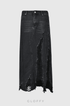 Melany Püsküllü Yüksek Yırtmaçlı Denim Maxi Etek