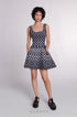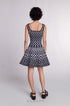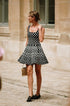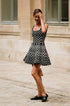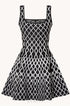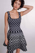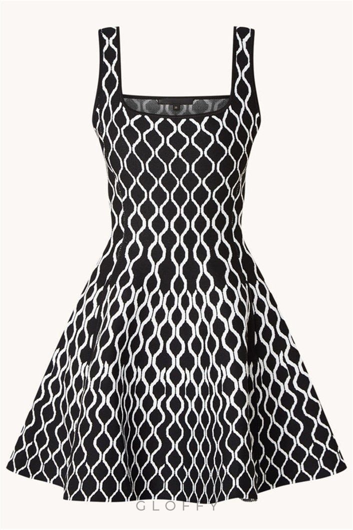 Grafik Motifli Mini Elbise ile tarzınızla öne çıkın. Cesur beyaz grafik tasarıma sahip bu elbise, modern bir dokunuş için göz alıcı kare yaka ve geniş askıları sergiliyor. Genişletilmiş etek ve iki cep hem işlevsellik hem de zarafet katıyor.