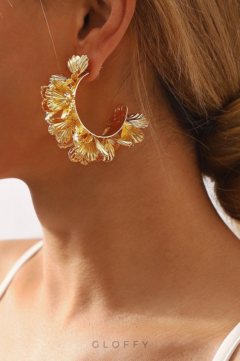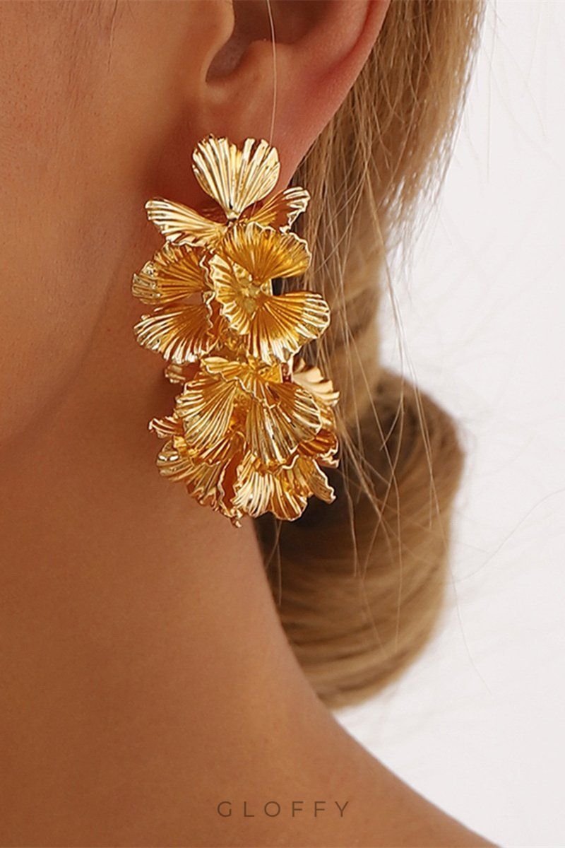 Bu çarpıcı, çok katmanlı, çiçekli C şeklindeki küpeler, her türlü kıyafete zarafet ve incelik katan benzersiz bir tasarıma sahiptir. Katmanlı çiçek öğeleri, hem gündelik hem de resmi durumlar için mükemmel olan dinamik, göz alıcı bir görünüm yaratır. Çok yönlü ve şık olan bu küpeler, her mücevher koleksiyonuna güzel bir ektir.