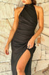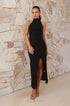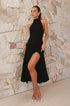 Her durumda dikkat çekmek için tasarlanmış zarif maksi elbisemizle gardırobunuzu yükseltin. Düğme kapatmalı yüksek yaka, sofistike bir dokunuş katarken, drape detayları ve yan büzme vurgular hoş bir siluet yaratıyor. Yarı elastik bel kısmı rahat bir oturuş sağlar ve yan bacak bölümü bir miktar çekicilik katar.