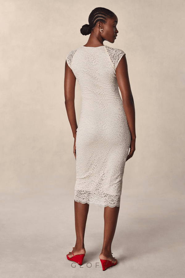 Nora Çiçekli Dantel Fiyonk Midi Elbise