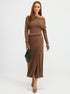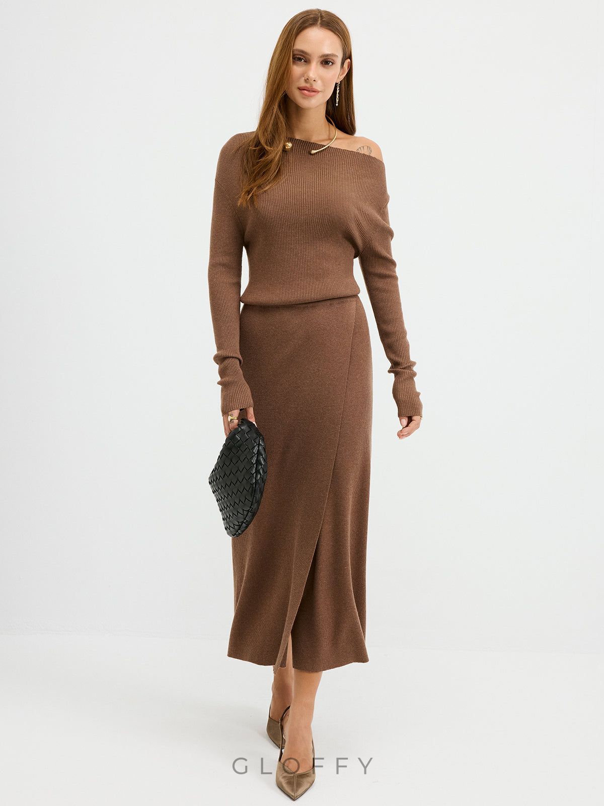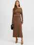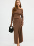 Omuz Dekolteli Örgülü Yün Karışımı Maxi Elbise