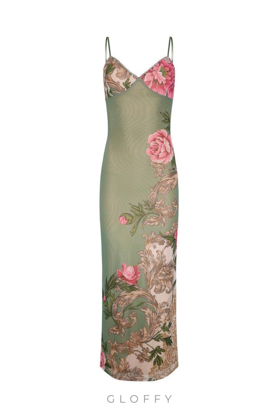 Patti Baskılı Vücuda Oturan Slip Uzun Elbise