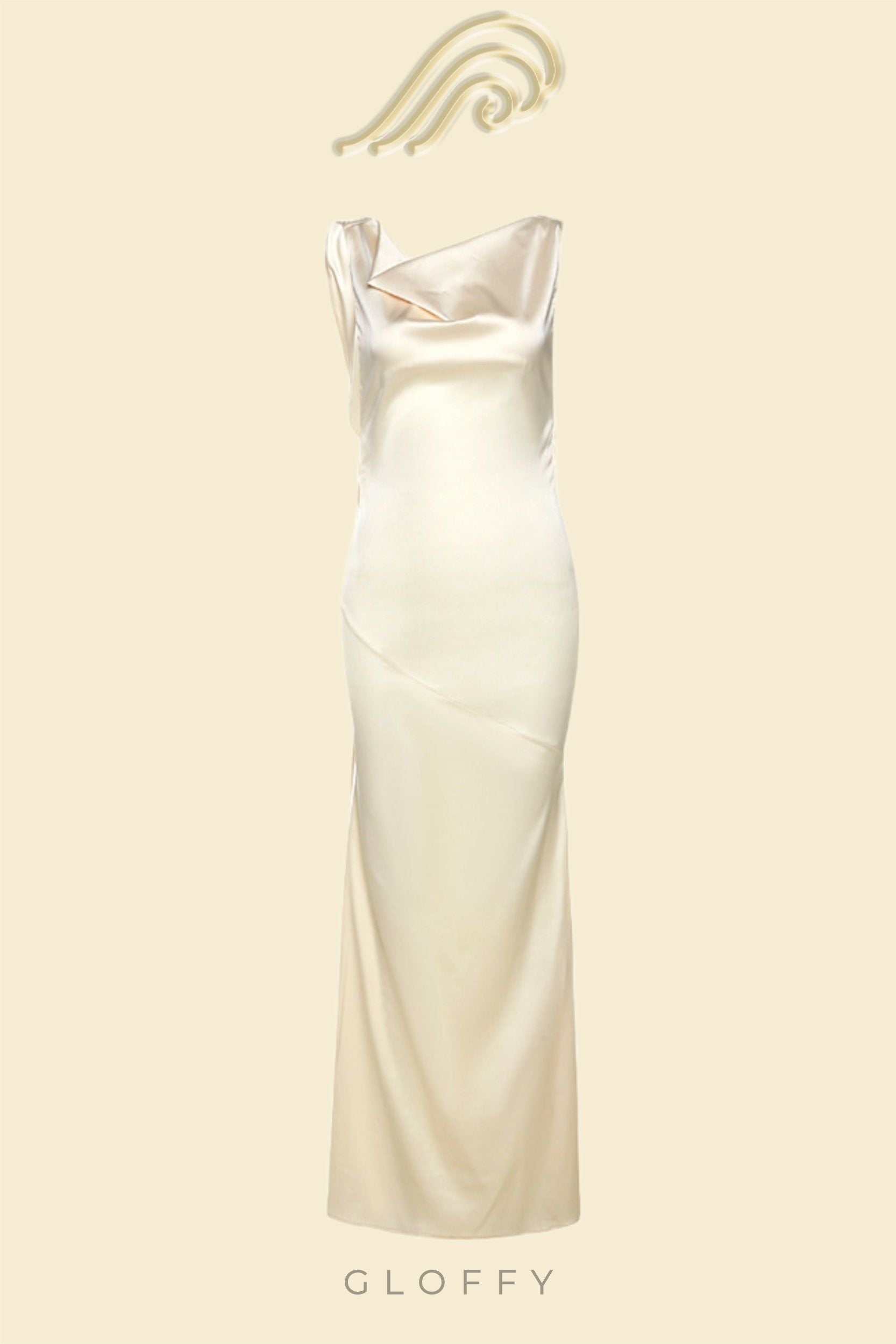 Persis Cowls Sırtı Açık Saten Uzun Elbise