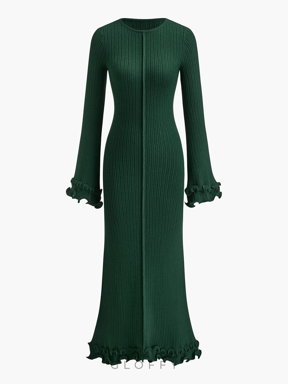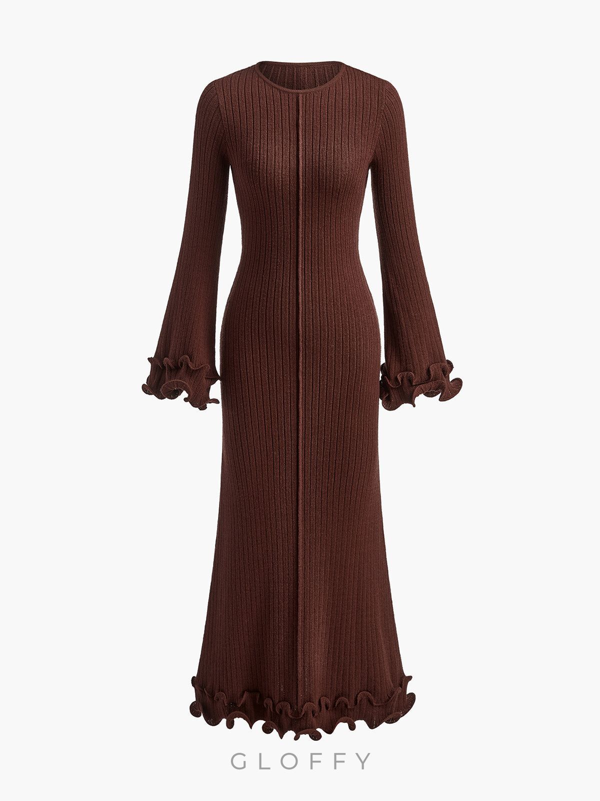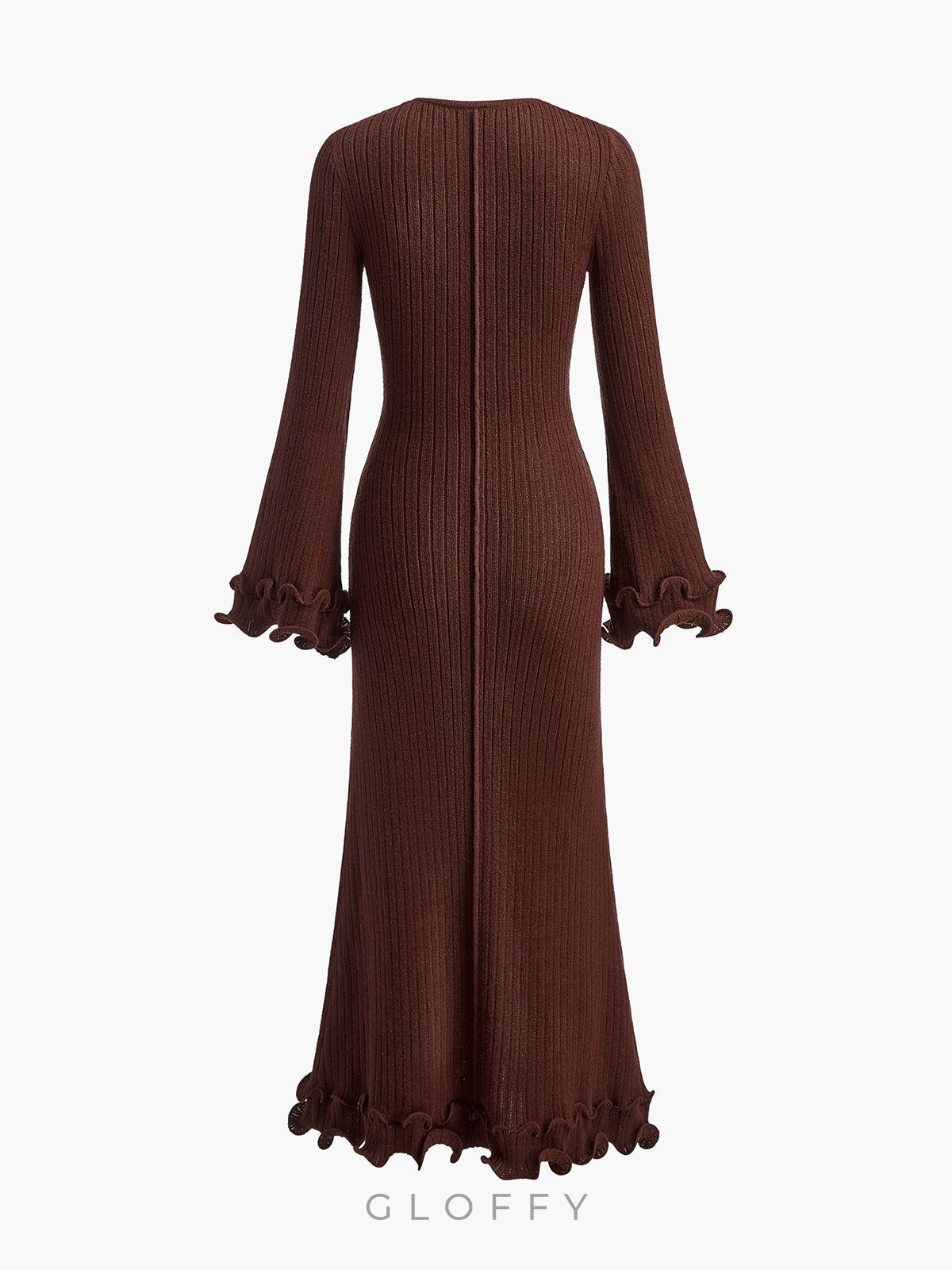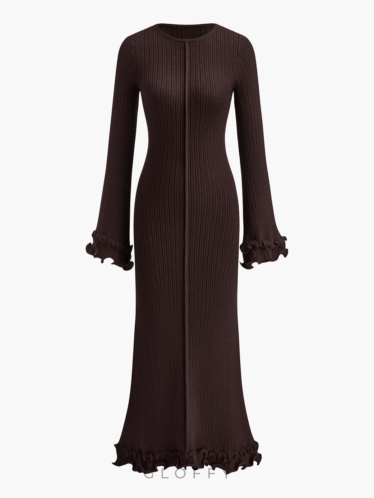Elowen Biyeli Fırfır Detaylı Triko Maxi Elbise