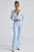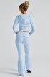 Yüksek Bel Fitilli İspanyol Paça Triko Pantolon – Açık Mavi