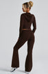 Yüksek Bel İspanyol Paça Triko Pantolon – Kahve