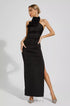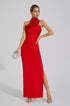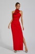 Natalie Kırmızı Çiçek Desenli Büzgülü Halter Maxi Elbise