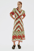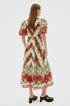 - Tasarım: Kabarık kollu, renk bloklu uzun elbise