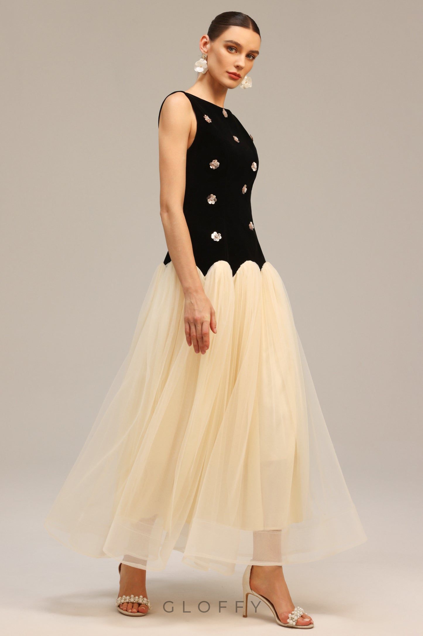 Gloffy’nin zamansız zarafet anlayışıyla hayat bulan bu özel tasarım, her adımda sofistike bir duruş sunmak üzere özenle hazırlandı. Işıltılı dokusu, özgün kesimi ve vücuda zarifçe oturan siluetiyle stiline güçlü bir imza atmak isteyen kadınlar için mükemmel bir tercih. Gündüz zarafetini gece ışıltısına taşımak isteyenler için kusursuz bir tamamlayıcı.