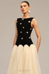 Vivianne Işıltılı Çiçek Detaylı Kolsuz Maxi Elbise