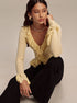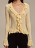 Fırfır Detaylı V Yaka Fitilli Hırka – Sarı