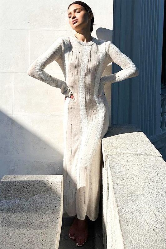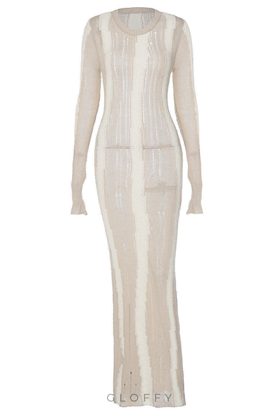 Ruth Splicing Dokulu Örgü Uzun Elbise