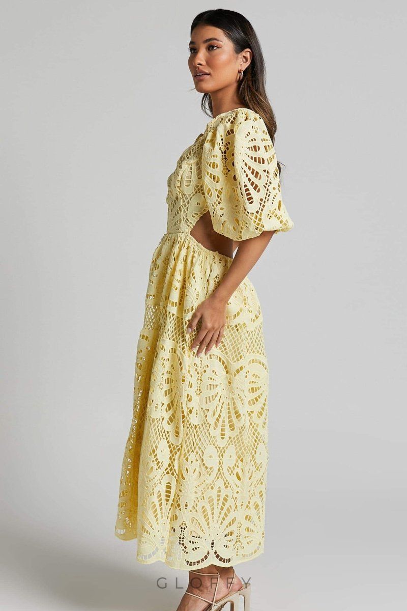 Sandra İşlemeli Dantel Kesimli Midi Elbise