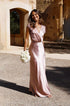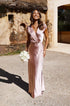 - Tasarım: Saten, düz renk, V yakalı, seksi balık etekli siluet