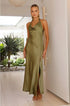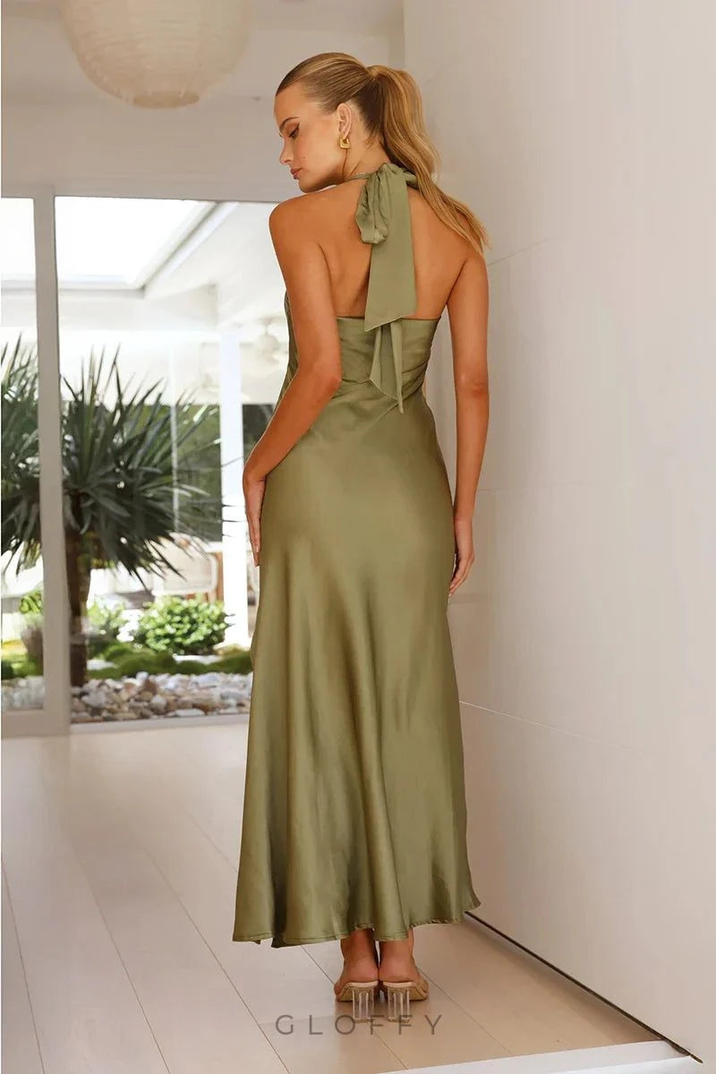 Sofistikeliğin gerçek bir vücut bulmuş hali olan Sian Elbisemizle akşam tarzınızı yükseltin. Arkasında kravat detayı ve lüks dekolte yakasıyla yular tarzına sahip bu elbise zarafet yayıyor. Saten görünümlü malzeme cazibesini artırırken yandan bölme, klasik maksimum uzunluğa cazibeli bir dokunuş katıyor.