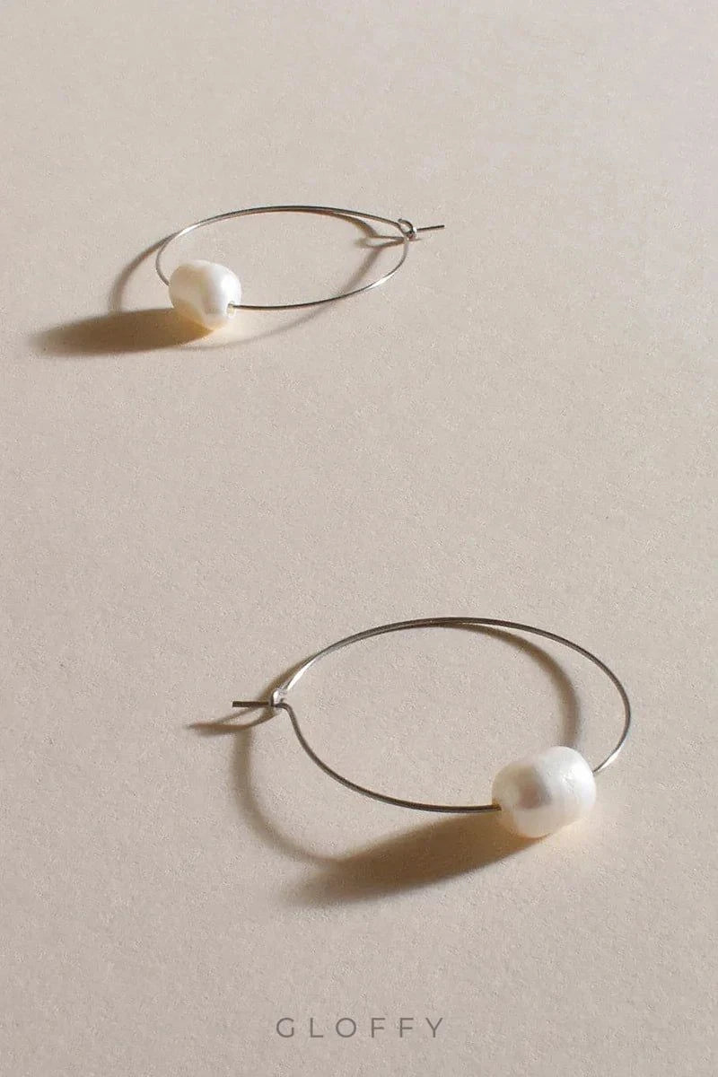 Basit İnci İnce Tel Küpeler - Krem/Gümüş