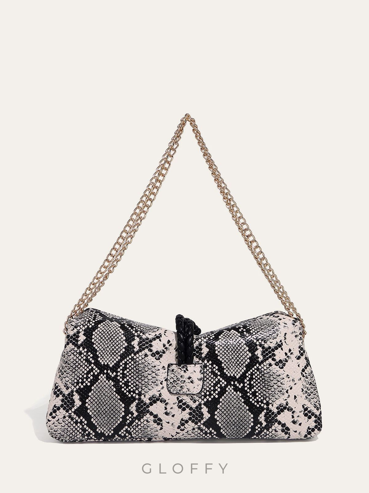 Yılan Derisi Desenli Zincir Askılı Çanta