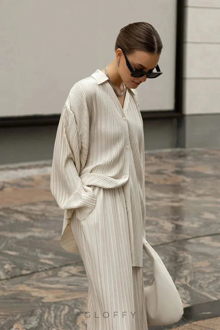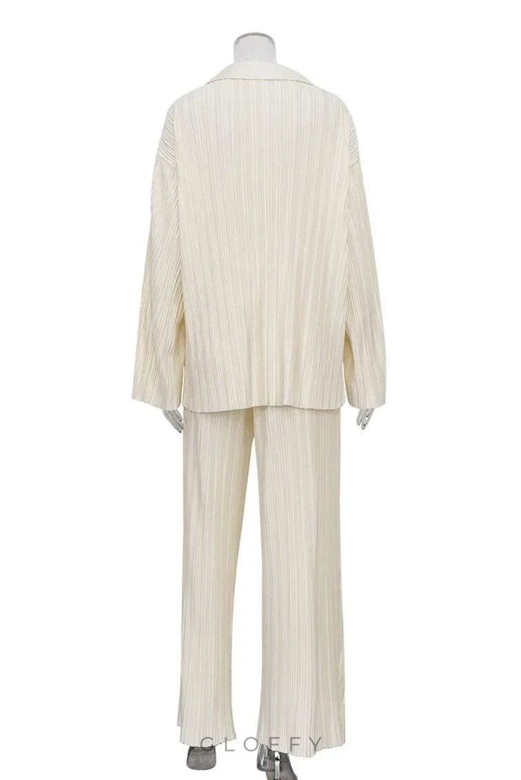 Düz Renk Pileli Uzun Kollu Pantolon Takımı