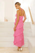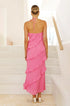 Güzel fırfır detayı eğlenceli ama sofistike bir hava katarken görünmez yan fermuar kusursuz bir uyum sağlar. Daha fazla konfor için tamamen astarlı olan bu elbise, resmi etkinlikler veya özel kutlamalar için çarpıcı bir seçimdir. Kendinizinkini yapın ve ışıl ışıl parlayın; bugün sipariş verin!