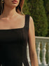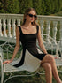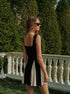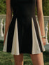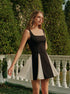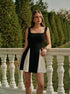 Stil Notu: Blanche elbise, klasik siyah beyazın çarpıcı kontrastını zamansız bir kesimle buluşturuyor. Fit üst gövdesi ve volanlı etek kısmında yer alan beyaz paneller, hareket ettikçe zarif bir dinamizm yaratır.