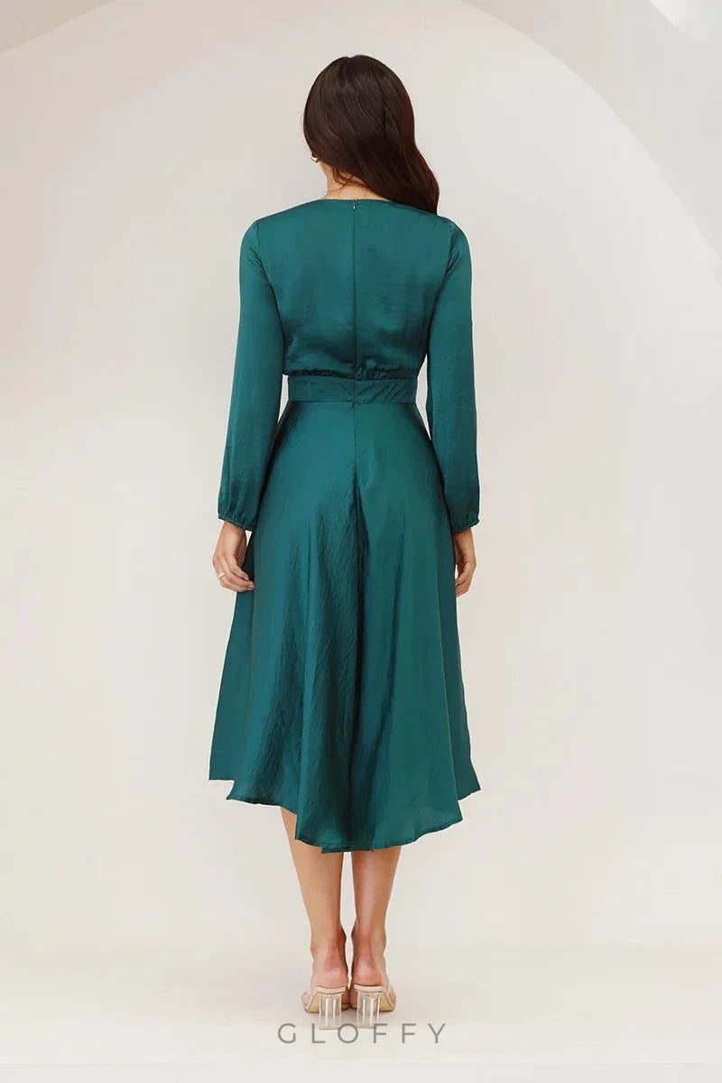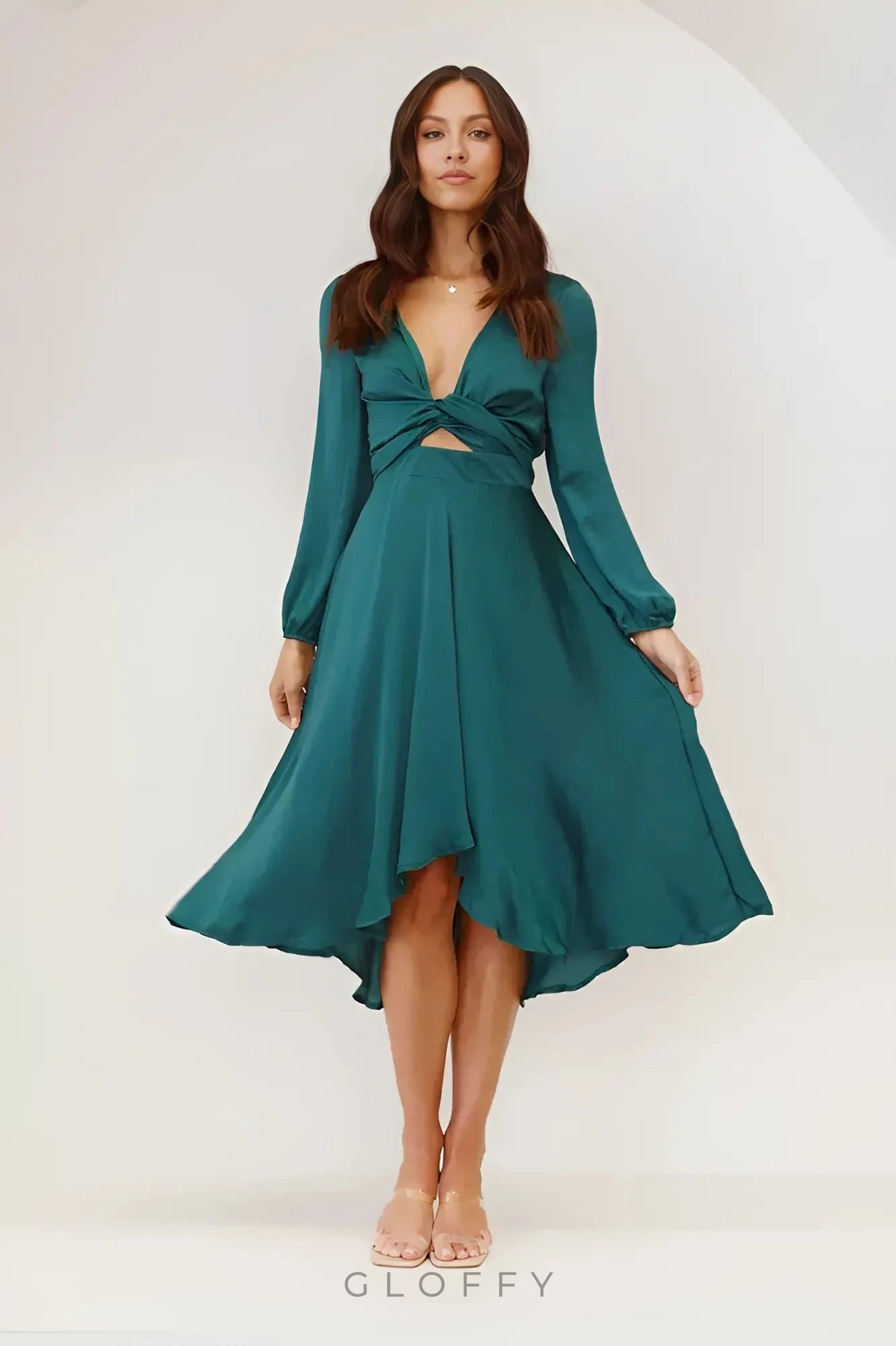 Zarafet ve kadınlığı temsil etmek üzere tasarlanan çarpıcı saten hissi veren elbisemizle bir sonraki özel etkinliğinizde kendinizi gösterin. Yüksek-düşük etek zarif bir siluet oluştururken, dar bel bandı beli sararak hoş bir uyum sağlar. 2 yönlü ayarlanabilir ön bağcıklı bu elbise, görünümünüzü kişiselleştirmenize olanak tanır ve bu da onu çeşitli vücut şekilleri ve boyutları için çok yönlü bir seçim haline getirir.