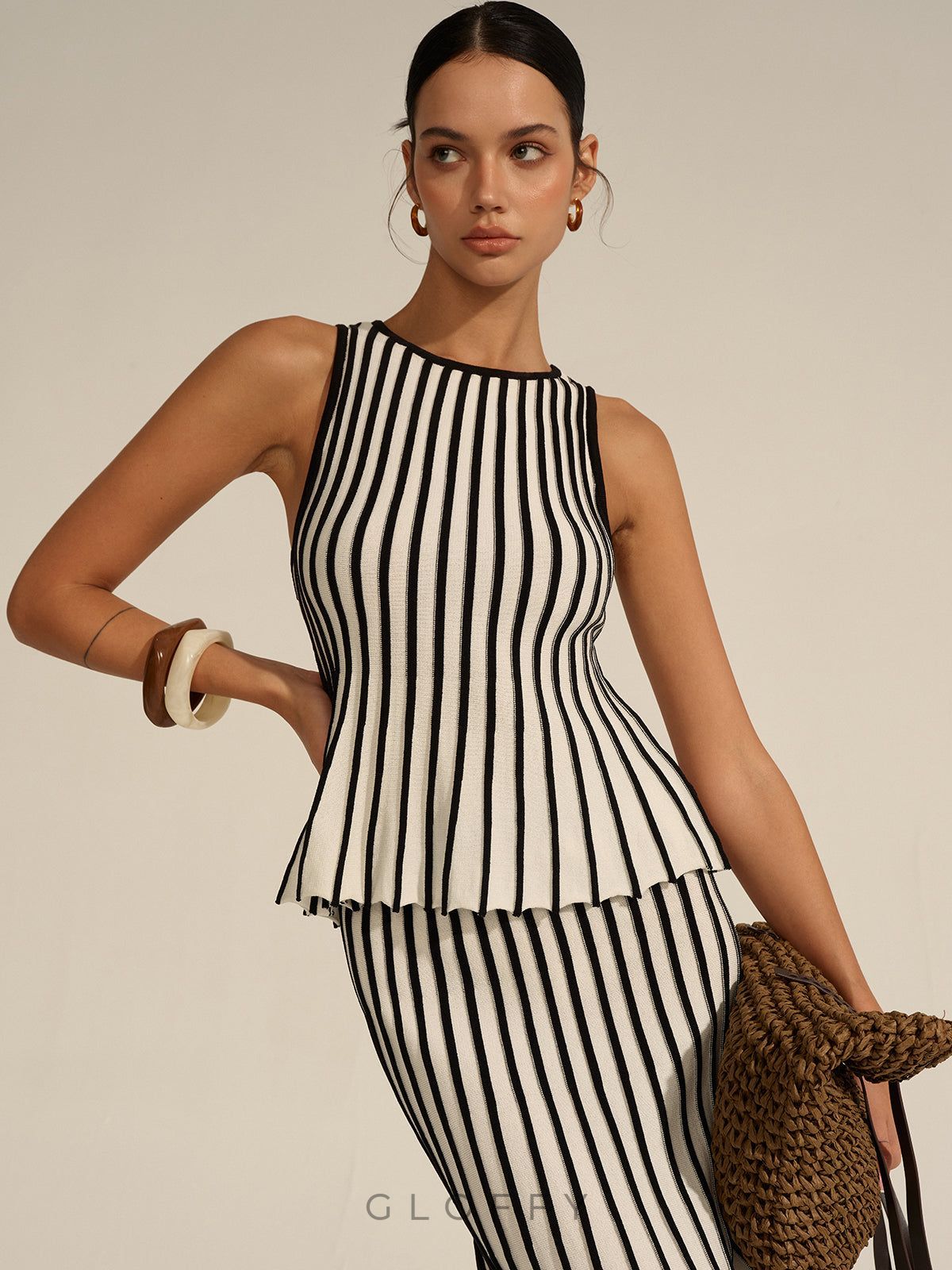 Kolsuz Fitilli Triko Mini Ceket – Siyah Beyaz