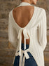 Sırtı Bağcıklı Fitilli Triko Bluz – Ekru