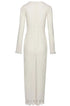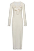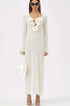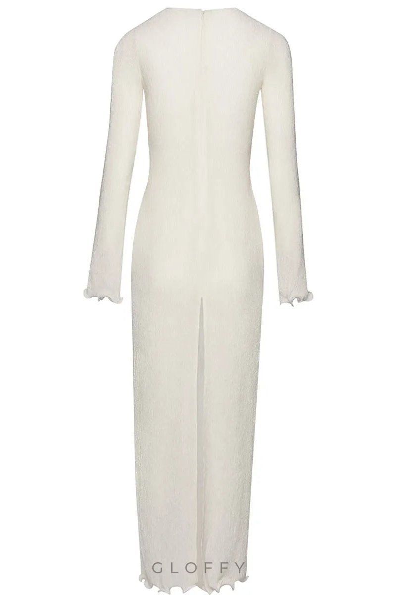 Derin V yakalı ve uzun kollu maxi elbisemizle gardırobunuzu yükseltin. Fırfırlı manşetler ve etek kısmı romantik bir dokunuş katarken, ön çiçek detayları kadınsı çekiciliğini artırıyor. Yarı şeffaf polyester kumaş güzel bir örtü oluşturur ve orta derecede esnek, rahat bir uyum sunar.