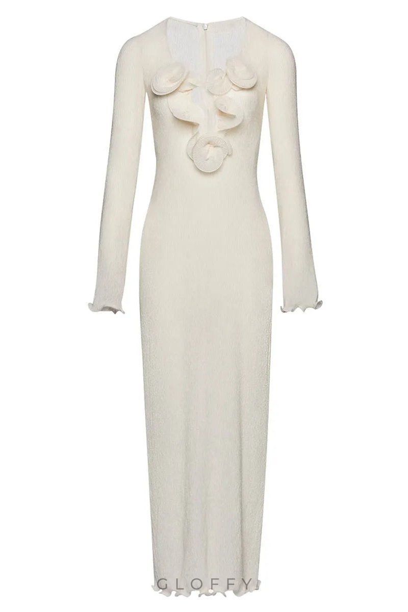 - Detay: Fırfırlı Manşetler ve Etek Ucu, Ön Çiçek Detayları