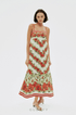 Bu zarif, yüksek belli maksi elbise, doğadan ilham alan bir çekicilik katan sofistike bir botanik baskıya sahiptir. Göz alıcı askılar ve akıcı siluet, her durum için mükemmel olan, zahmetsiz ve zarif bir görünüm yaratır.
