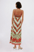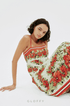 - Tasarım: Bitki temalı baskılı, ince askılı, yüksek belli elbise