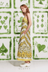 Bu zarif, yüksek belli maksi elbise, doğadan ilham alan bir çekicilik katan sofistike bir botanik baskıya sahiptir. Göz alıcı askılar ve akıcı siluet, her durum için mükemmel olan, zahmetsiz ve zarif bir görünüm yaratır.