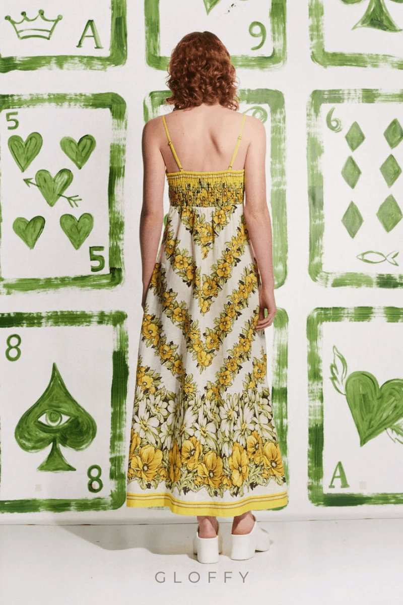 Tristane Spagetti Çiçekli Uzun Elbise Sarı