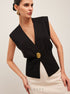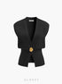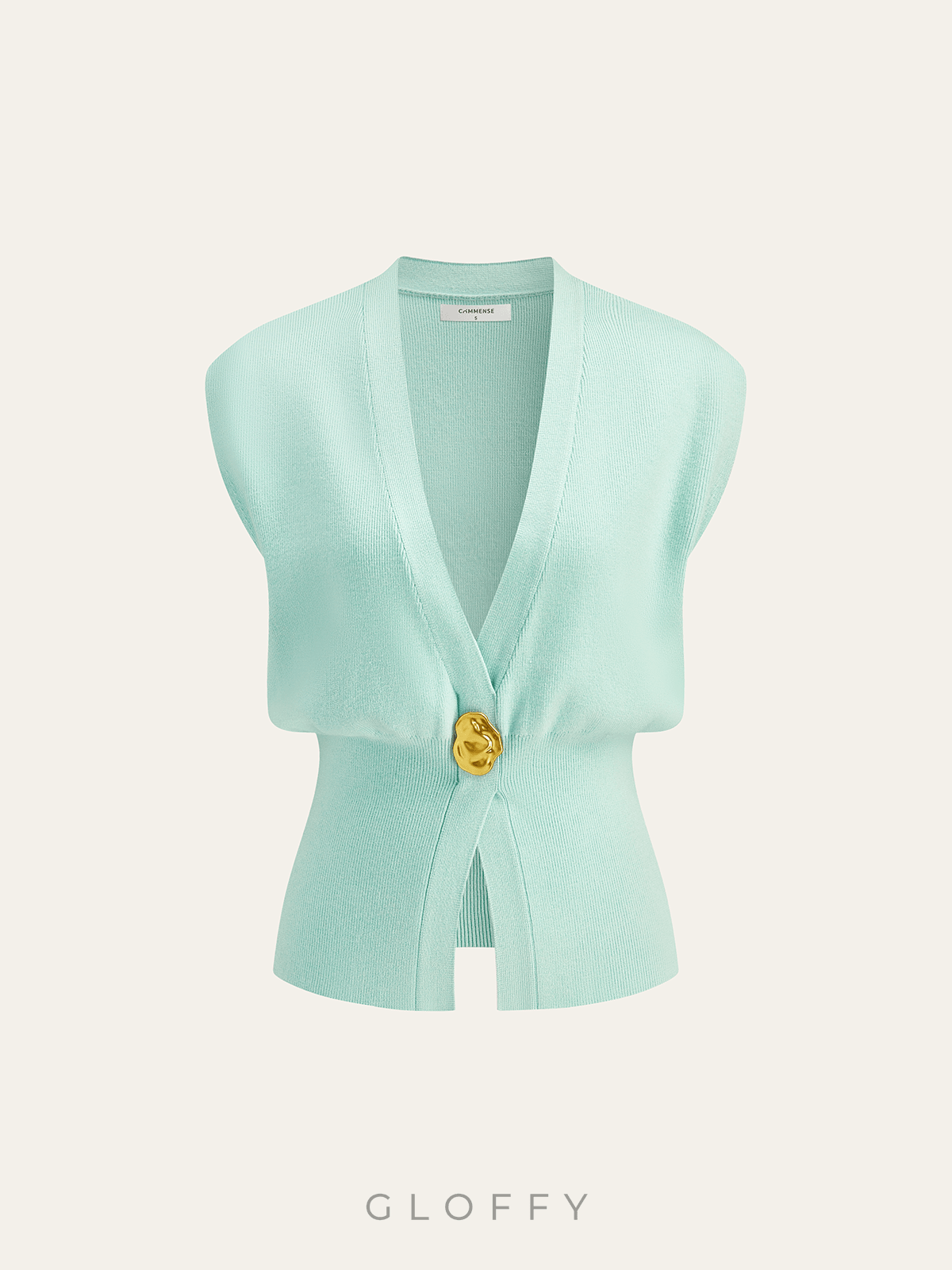 V Yaka Tek Düğmeli Basic Triko Yelek – Siyah