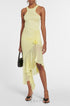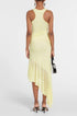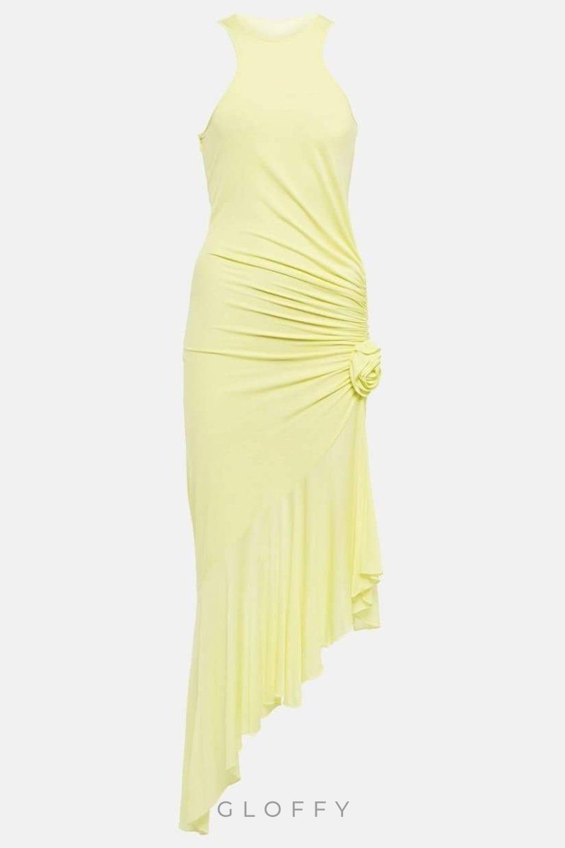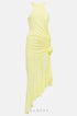 Yumuşak ve esnek Tencel'den üretilen Asimetrik Fırfırlı Midi Elbise ile tarzınızı yükseltin. Bu elbise, şık uyumunu artıran dantelli bir ön panele sahipken, asimetrik fırfırlı etek kısmı tuhaf bir dokunuş katıyor. Zarif çiçek aplikeli vurgular, görünümü bir miktar zarafetle tamamlıyor. Yüksek esnekliğe sahip kumaş rahatlık sağlar ve kazak tasarımı giymeyi kolaylaştırır. Herhangi bir özel durum veya göze çarpan bir akşam için mükemmeldir.