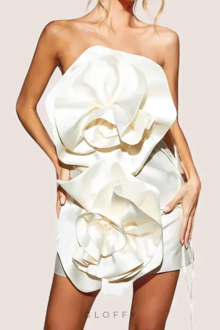 Zarif bir dokunuş katan büyük çift çiçek aplikeli Straplez Saten Mini Elbisemizle kendinizi gösterin. Straplez yakası ve korse arka bağcıkları şık bir uyum sağlarken, mini boyu ise modern bir siluet sunuyor.