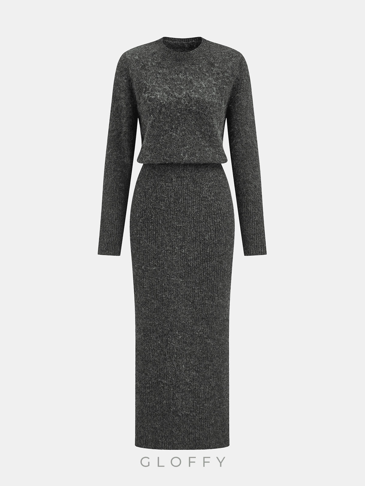 Yün Karışımlı Kıvırcık Midi Elbise